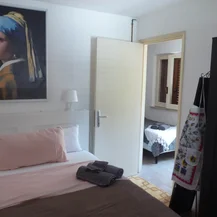 Dispone di bagno e camera da letto privati, separati da un’unica porta.